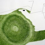Démarche poétique,on songe à l’élaboration d’un poème tel que Mallarmé le concevait,l’oeuvre se construit selon un double mouvement.D’une part,des constructions où le fil joue ici un rôle primordial,d’autre part, une forme plus organique renvoyant à la notion de tourbillon, de vertige.Les structures ne sont pas sans évoquer l’habitat alors que se déploient dans l’espace des formes inconnues, presque proliférantes.Sylou LE RHUN dit « chaque dessin est un acte,un micro-évènement,un point tellurique« Débarassée de toute théatralisation, le dessin concentre des énergies, s’attache à des périphériques,recompose l’espace.Assurément, le visiteur est amené à se confronter mentalement à cette mobilité, il est aussi touché physiquement.Le paradoxe est au coeur de cette aventure.Une série de dessins a été conçue à l’aide d’un ordinateur, mais ce geste synthétique se trouve brutalement opposé par le geste du corps qui a piqué chaque support. Article de Pierre Giquel /Poète & critique d’art.
